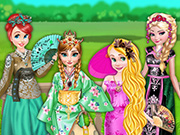 Princesses Elsa, Anna, Ariel, and Rapunzel will try new styles of clothing, kimono, and Cheongsam. Their differences, Anna like kimono, Elsa like qipao, and the girls decided to start a changing parade, come on and help them choose beautiful clothes and accessories, and see what kind of style is more suitable for them?